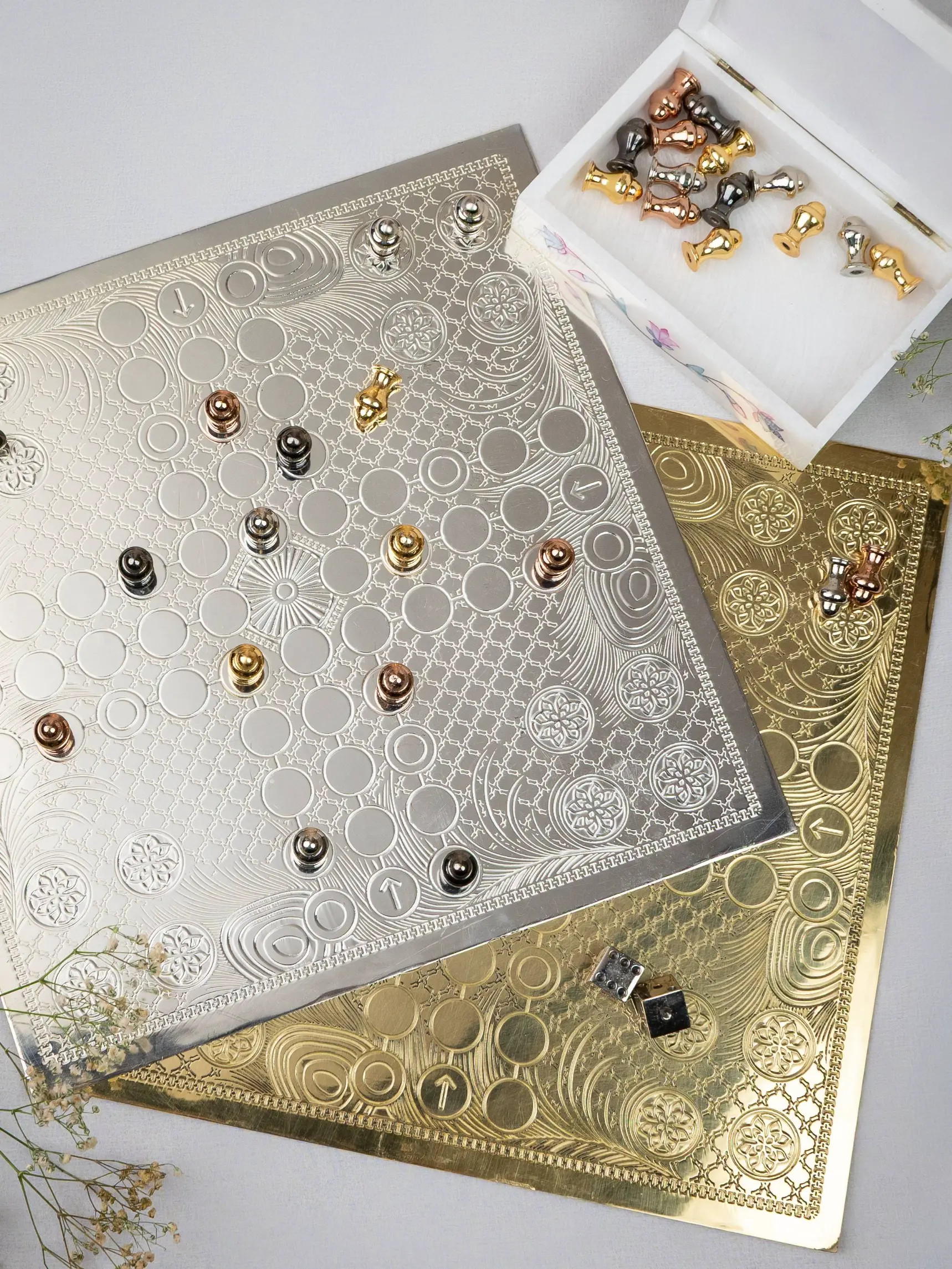 - 16 Metal Pawns (Gold / Silver / Antique variants)